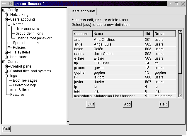 tienes "linuxconf" instalado, escribe linuxconf, que es un frontend